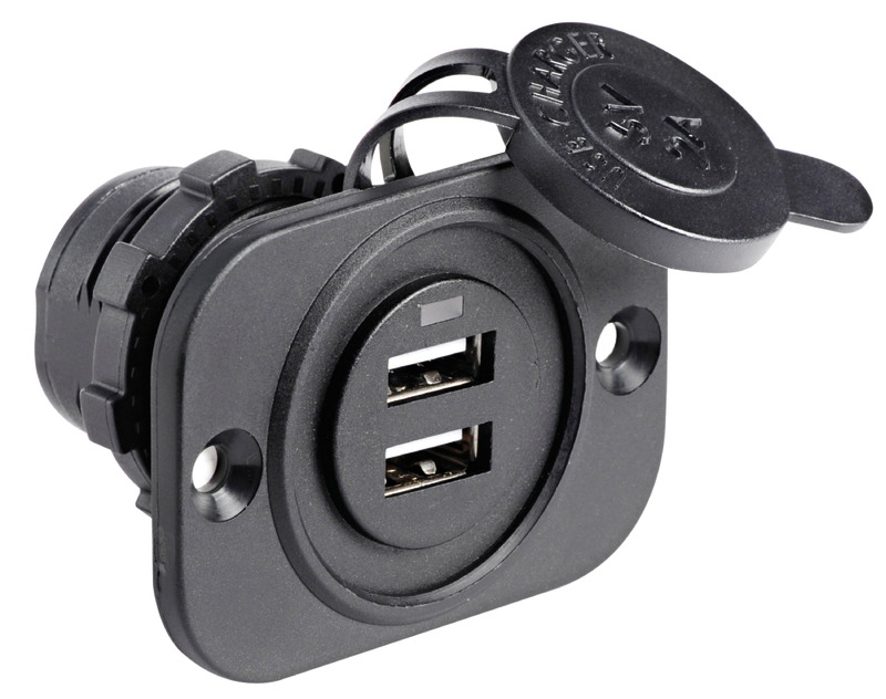 Fabriquées en nylon avec capuchon de protection pour les rendre étanches. Entrée 12/24 V. Sortie USB 5V.